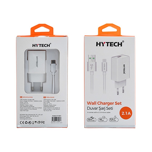 Hytech HY-XE21 5V 2.1A Micro USB  Beyaz Şarj Kablo